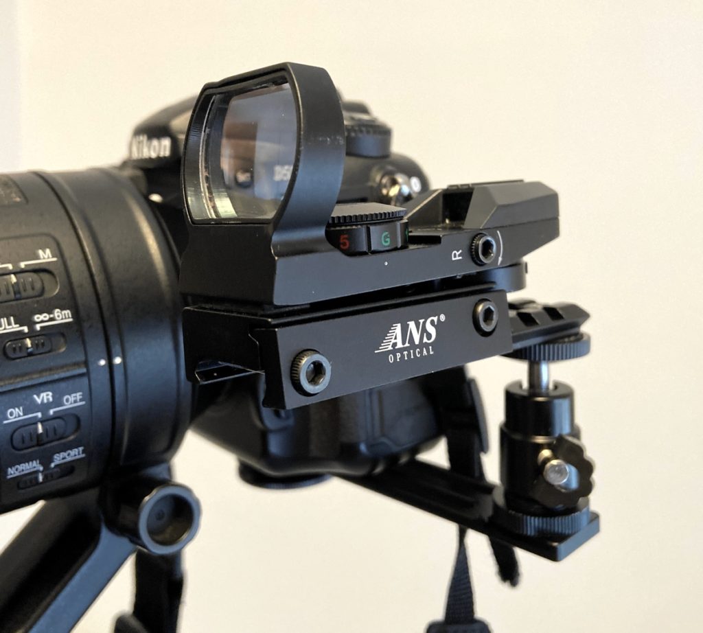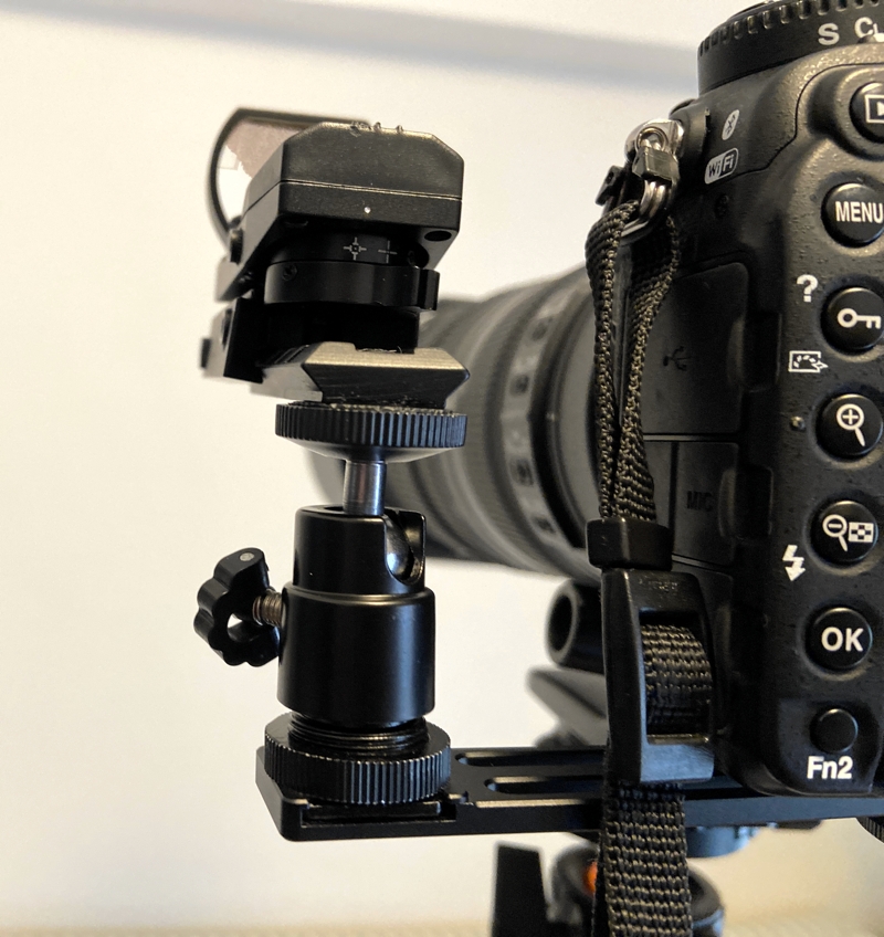 野鳥を撮られている方で照準器を使っておられる方がいます。主に固定焦点の望遠レンズの場合に必要になると思います。500mm以上のレンズになると画角が狭いので、鳥が画面から外れるとどこに行ったか分からなくなり探すのに苦労します。その時照準器をつけていると目視による広い視野と照準器(レンズと狙いをあわせておく)で場所が確定できるので見つけるのが早いです。ズームレンズの場合は、一旦引いて見つけてから寄ることが出来るので必ずしも照準器は必要としないと思います。
